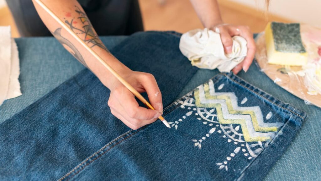 | Broderie créative | Ajout de motifs brodés pour cacher les imperfections | Customisation d’un jean usé |
